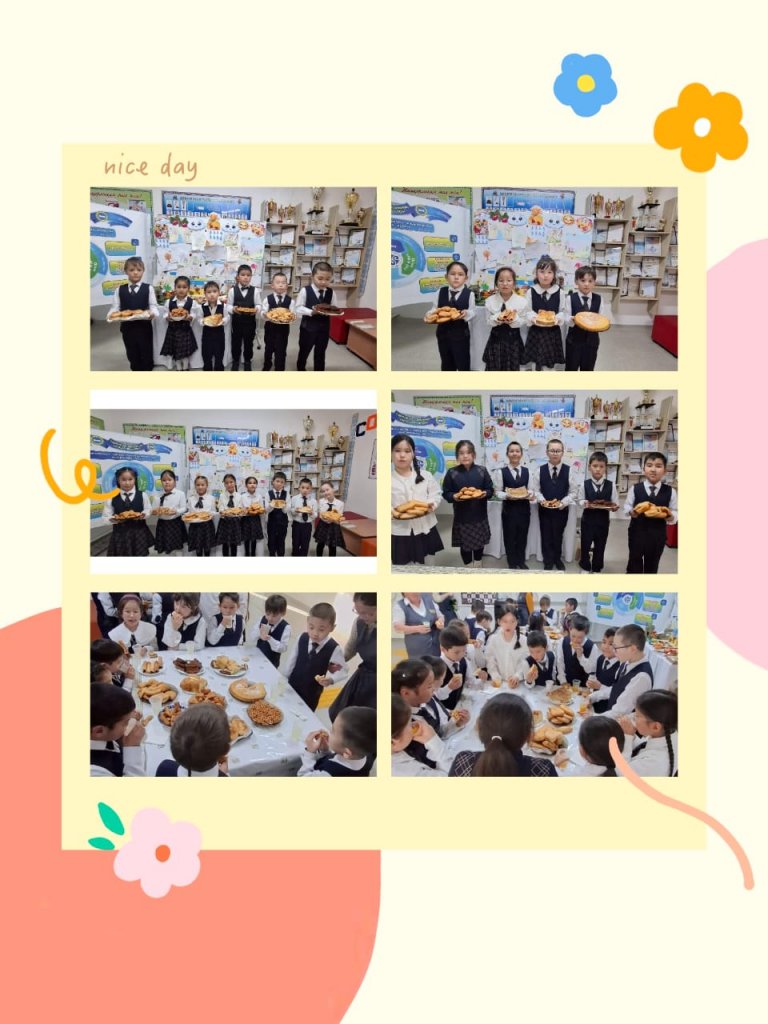 Бүгінгі жоспарға сәйкес оқушыларымыз ұннан жасалған түрлі тағамдар мен жеміс-жидектерден әзірленген дәмді тағамдарын әкелді. Оқушылар қолынан жасаған тағамдарының ерекшелігін таныстырып, бір-бірімен бөлісті. Дәмін татқан сәтте оқушылардың жүздерінде қуаныш пен ризашылықтың нышаны байқалды.